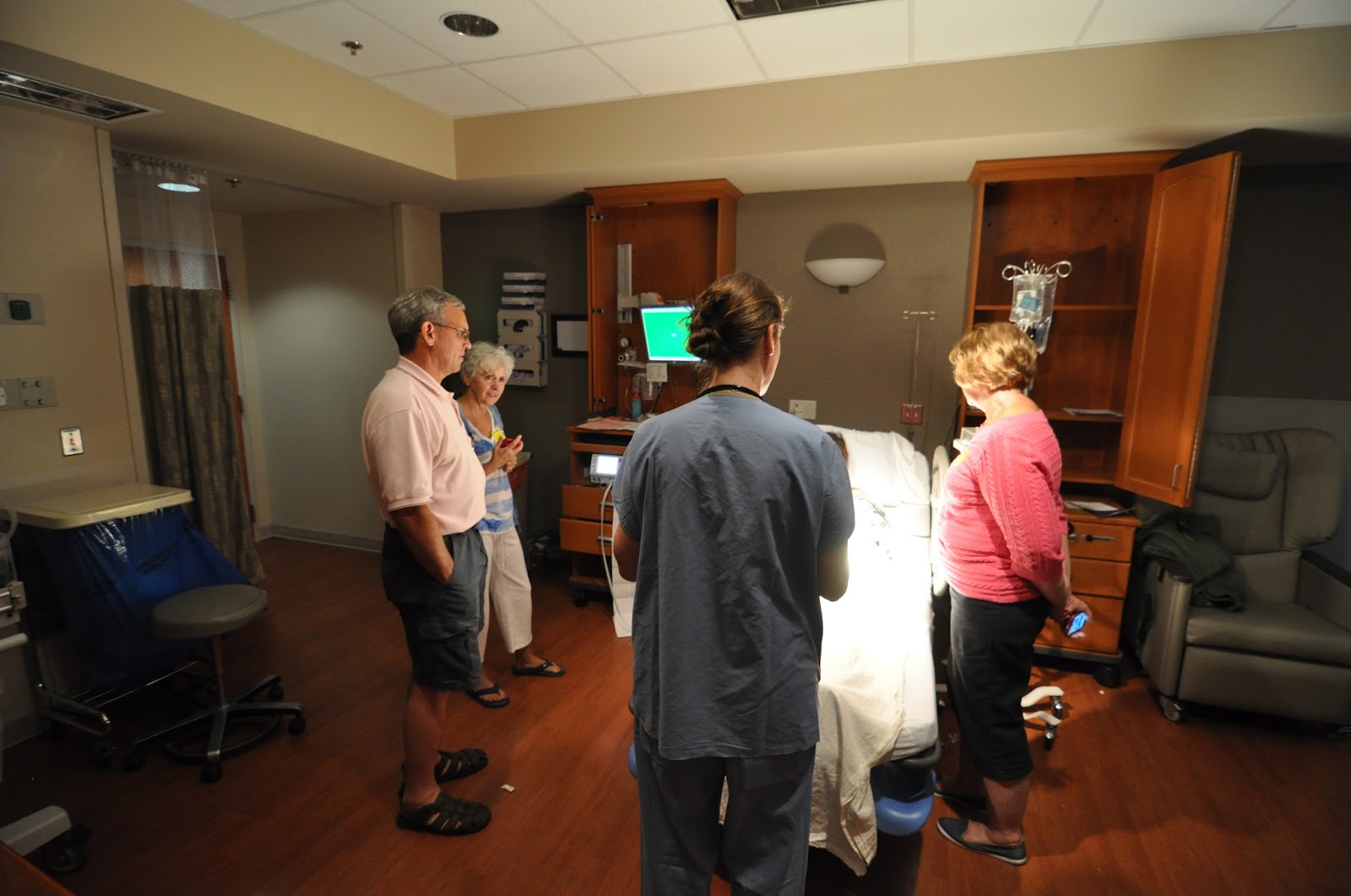 She said that they had requested that I be started on a low dose of pitocin and we asked her a bunch of questions. I still wasn't sure if I wanted to be induced, so I asked her if I would get to talk to Dr. Pollard first. I guess I hadn't read enough about being induced, because I just didn't anticipate that happening. I didn't realize that I would be confined to the hospital bed for the duration of labor. She explained and then Dr. Pollard reiterated that I was already having regular contractions and the low dose of pitocin would just help to move things along.
